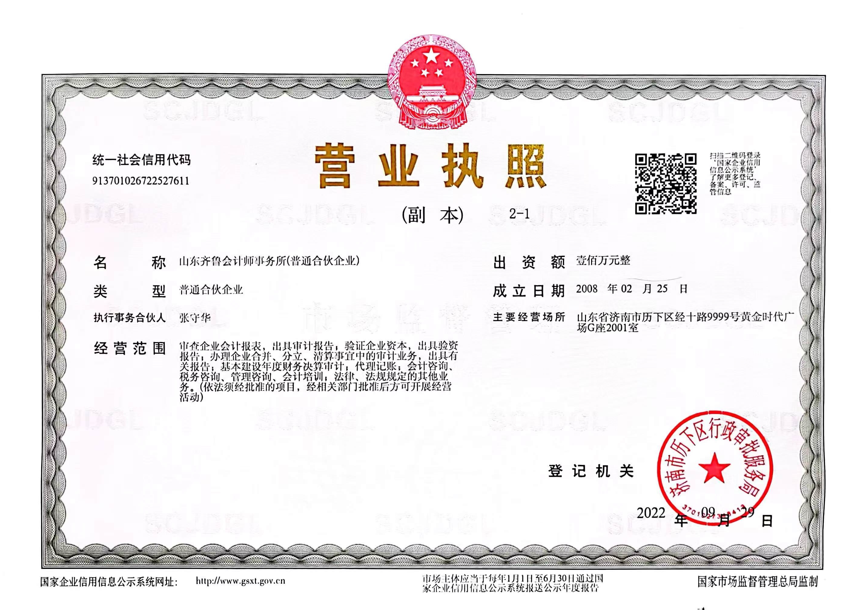 山东齐鲁会计师事务所营业执照